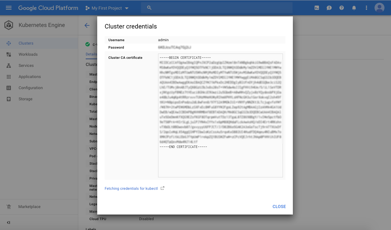 在下面的表单中,Kubernetes URL字段上输入https://,然后输入从GCP账户复制的集群端点IP地址。