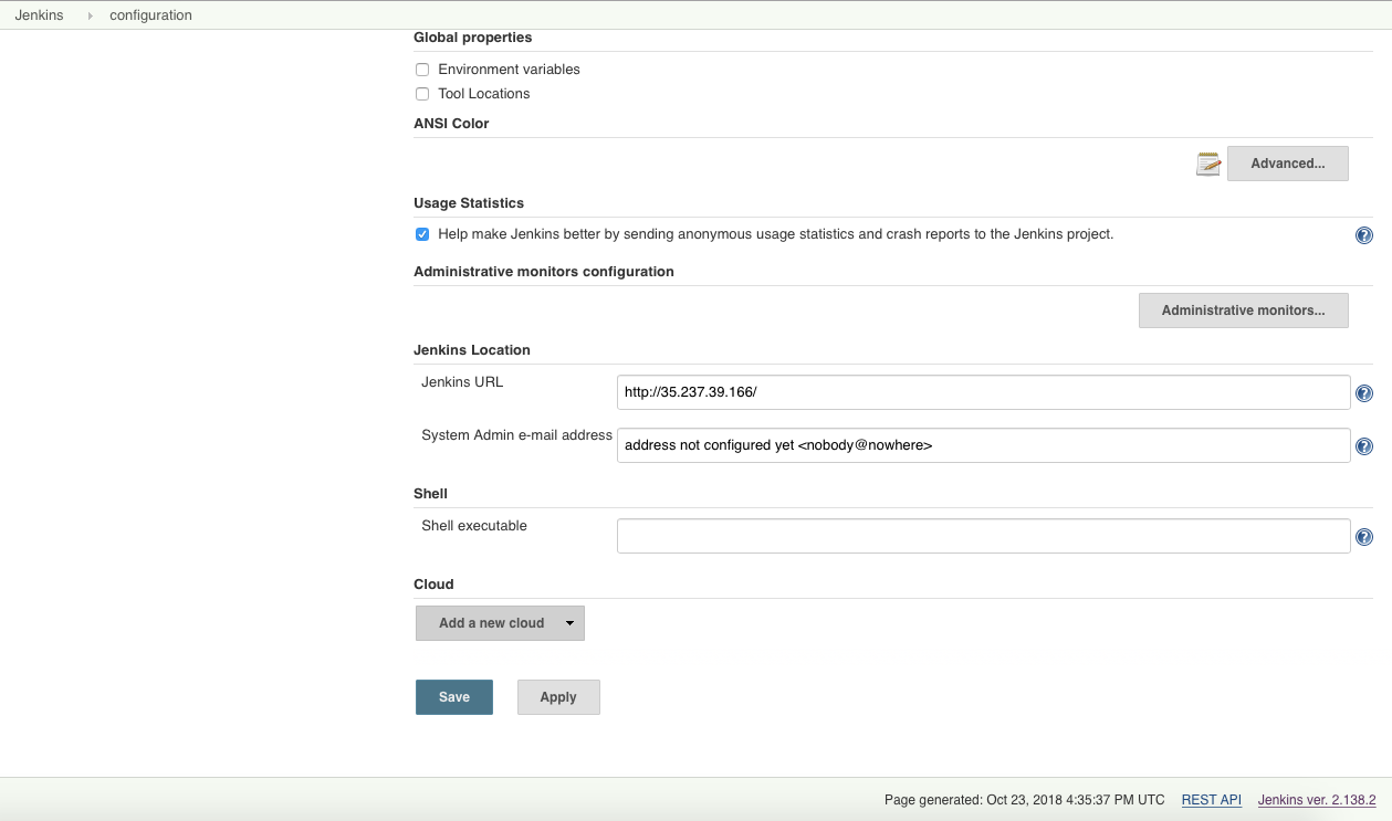 有了Jenkins master启动运行后,我们可以进一步配置动态构建代理,以在必要的时候可以自动启动Pods。