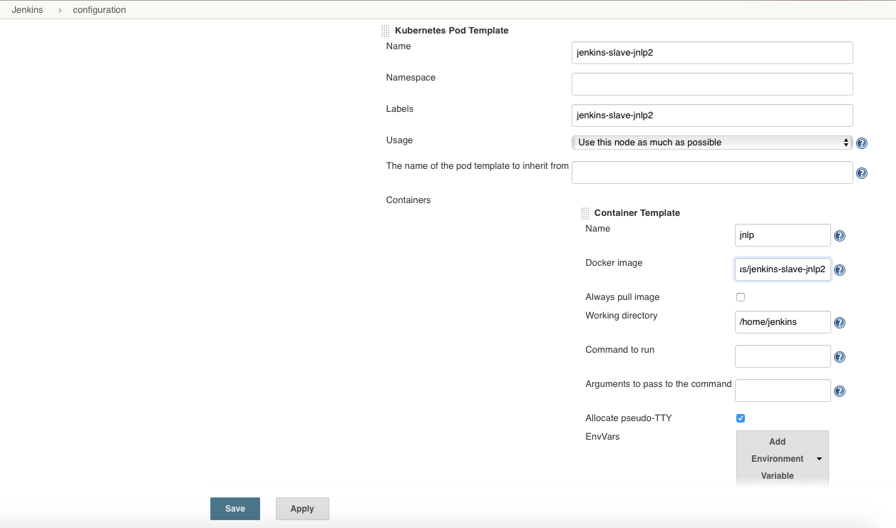 Name: jnlp(这是Jenkins代理需要的)