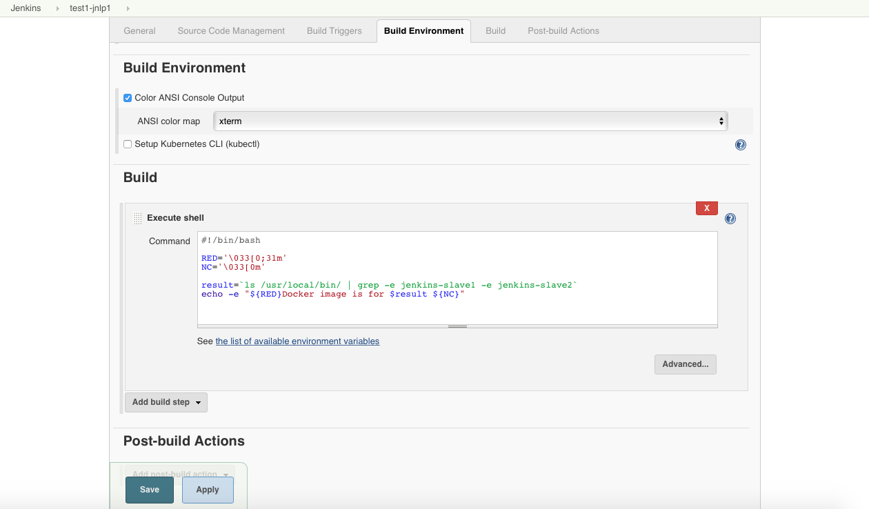 在Build部分,单击Add build step并选择Execute shell。把下面的脚本粘贴进去。