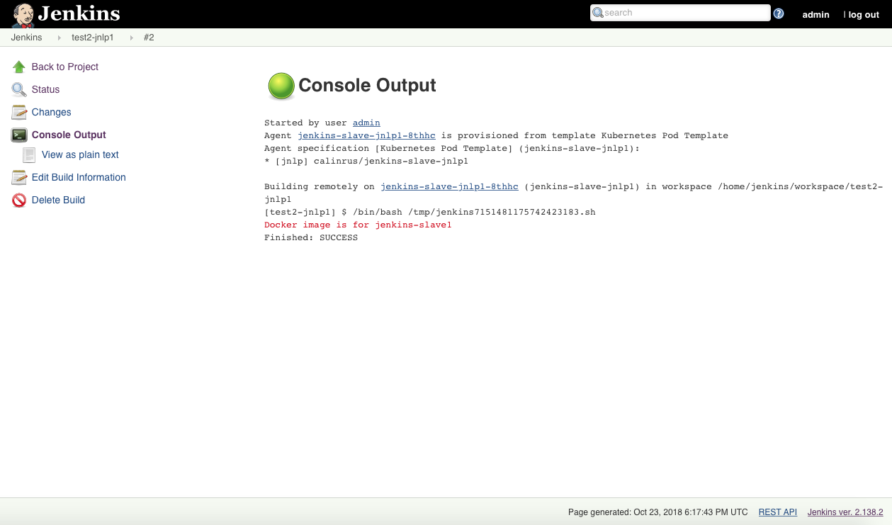 你可能还需要同样的命令来构建第二个镜像给Jenkins JNLP代理: