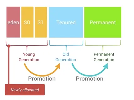 Android 的内存堆是分代式(Generational)的,意味着它会将所有分配的对象进行分代,然后分代跟踪这些对象。 例如,最近分配的对象属于年轻代(Young Generation)。 当一个对象长时间保持活动状态时,它可以被提升为年老代(Older Generation),之后还能进一步提升为持久代(Permanent Generation)。