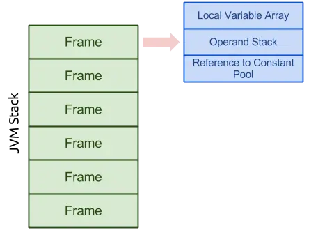 每个帧包含一个后进先出(LIFO)堆栈,称为其操作数堆栈。帧的操作数堆栈的最大深度在编译时确定,并与帧相关的方法的代码一起提供。
