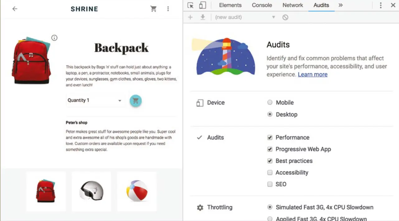如果你不确定你的JavaScript性能是否有问题,你可以使用Chrome提供的Lighthouse——是一个Google开源的自动化工具,主要用于改进网络应用(移动端)的质量。目前测试项包括页面性能、PWA、可访问性(无障碍)、最佳实践、SEO。Lighthouse会对各个测试项的结果打分,并给出优化建议,这些打分标准和优化建议可以视为Google的网页最佳实践。