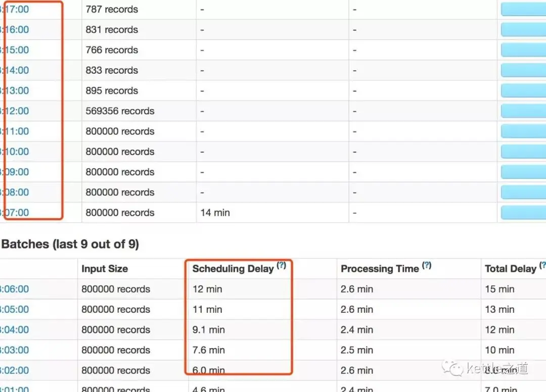 application UI能详细了解到每个batch的提交时间、数据处理时间、延迟执行时间以及处理的数据条目数。