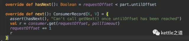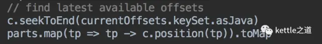 spark Streaming的内部逻辑,上一个job的untilOffset成为下一个job的fromOffset。latestOffset函数计算untilOffset,核心计算思想是先consumer.seekToEnd,然后position函数就可以取得当前最后offset:
