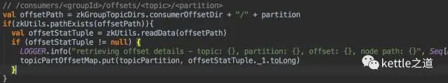 在spark Streaming作业开始时,readOffsets函数用于从zk读取上次应用保存的最后处理的消息偏移量,有以下两种不同处理场景: