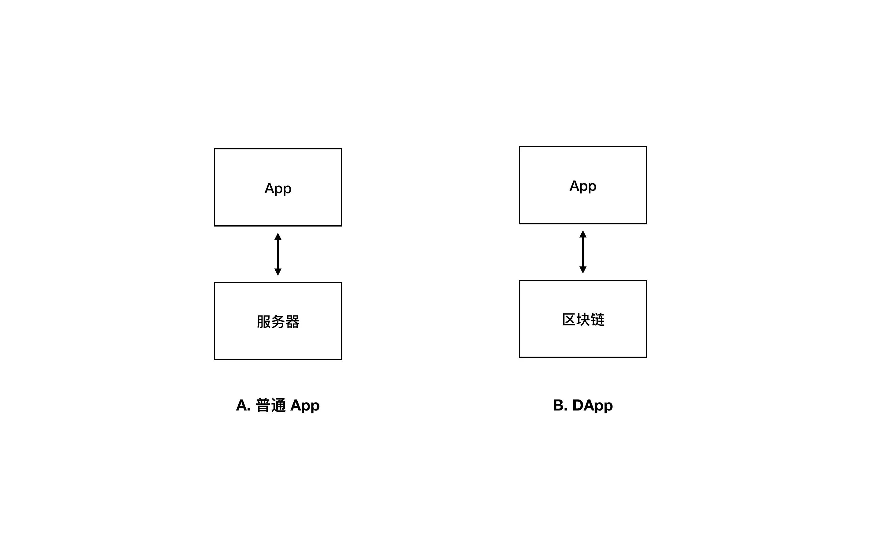 先来说第一点,基于智能合约。传统 App 是跟自己的后端服务器进行交互,而 DApp 从前端来讲其实也跟 App 一样,比如都可以做成 H5 Web 应用,或者可以做成各个平台的原生 App ,但是重点是 DApp 的后端不是自己的服务器,而是智能合约。