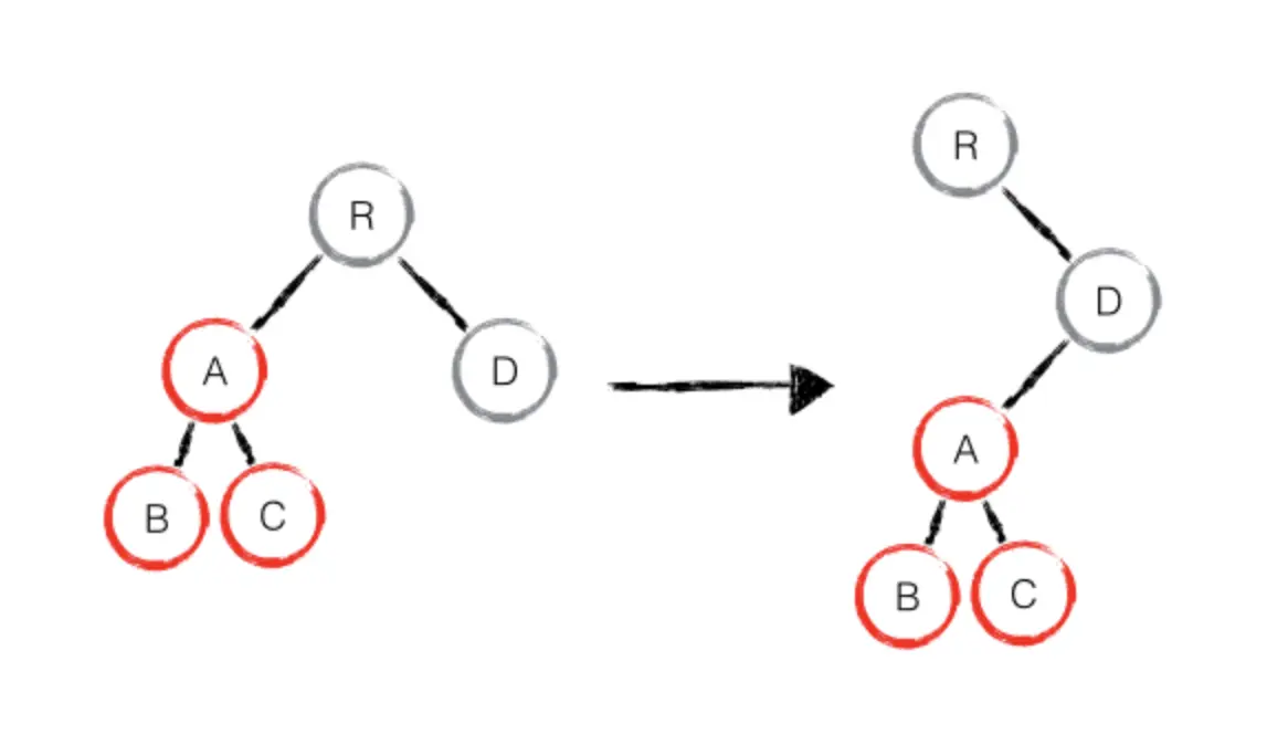 如下图,A 节点(包括其子节点)整个被移动到 D 节点下,由于 React 只会简单的考虑同层级节点的位置变换,而对于不同层级的节点,只有创建和删除操作。当根节点发现子节点中 A 消失了,就会直接销毁 A;当 D 发现多了一个子节点 A,则会创建新的 A(包括子节点)作为其子节点。此时,React diff 的执行情况:create A -> create B -> create C -> delete A。
