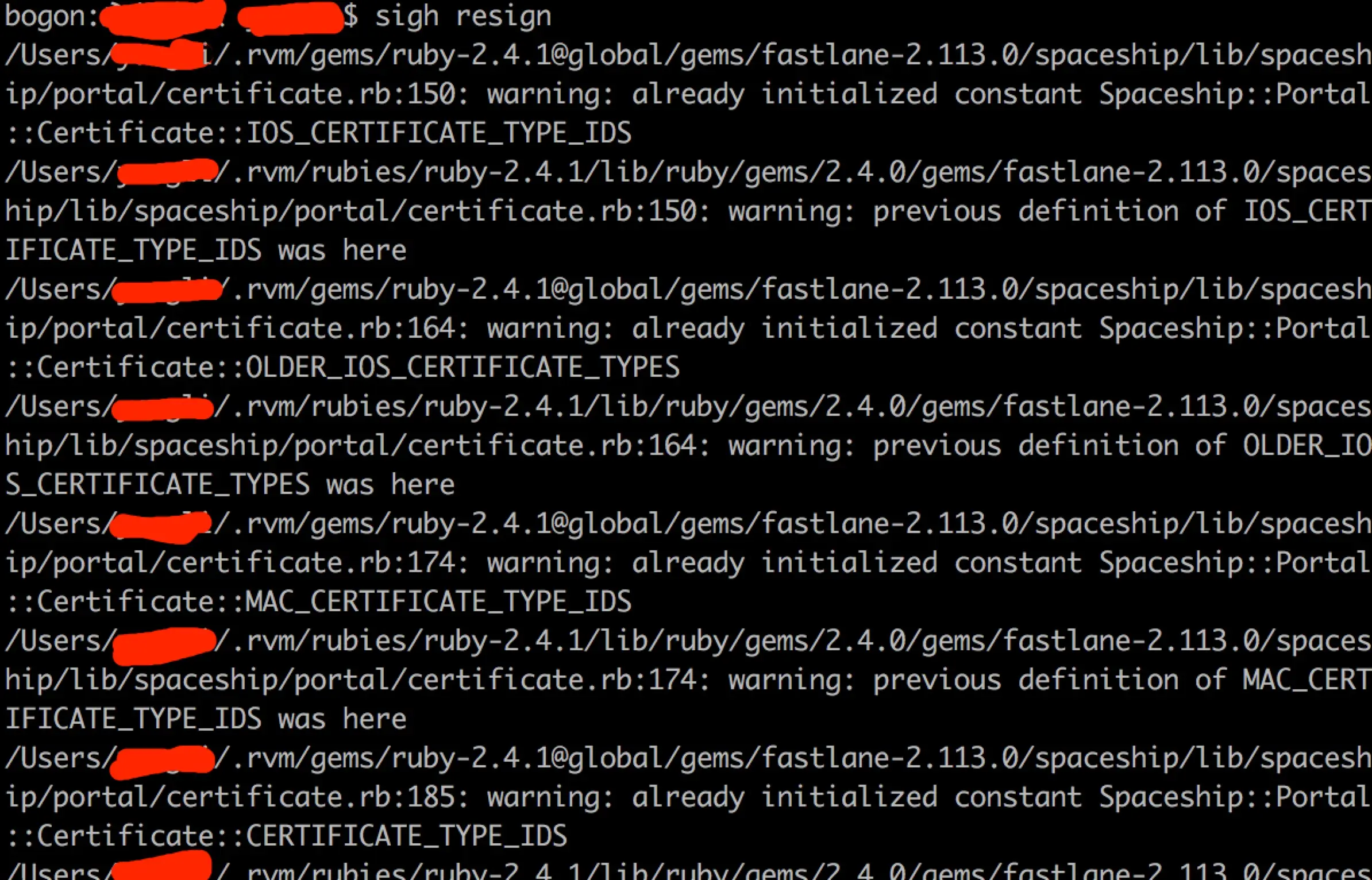 - 命令行cd到这个ipa文件夹目录下,执行sigh resign或者fastlane sigh resign命令,