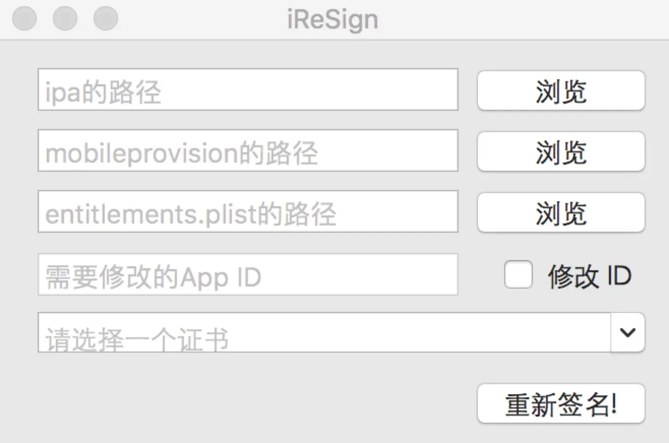 下载 iResign,下载完成后直接打开可执行文件iReSign