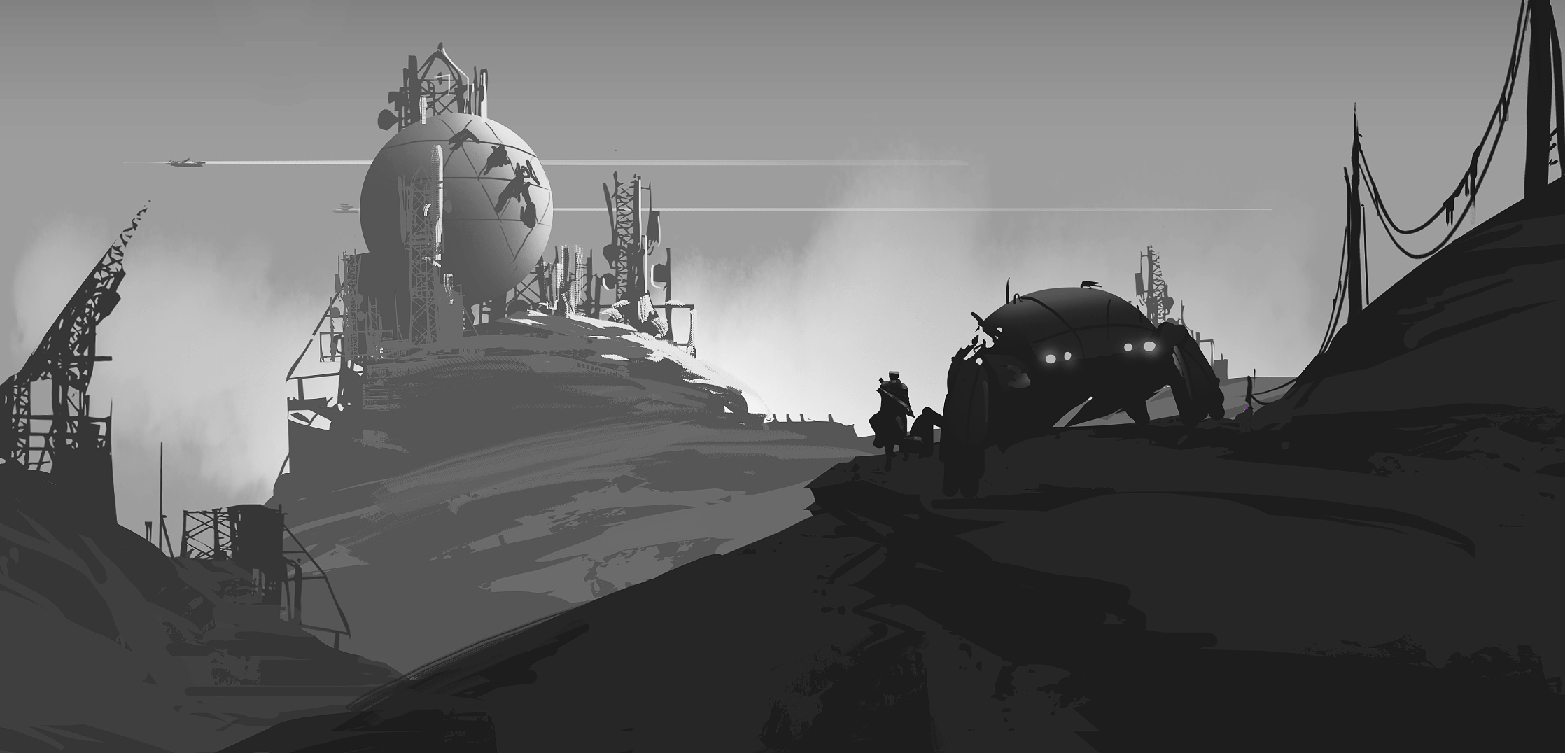 5.整体的细节在黑白稿的时候不需要刻画太多,在后续的上色阶段在进行细化,级别保持在2-3个灰阶去交代结构就住够了,时刻的注意整体的造型和变化,左右水平反转去检查。最后黑白稿完成。