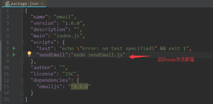 npm init(配置可全部选着默认,一直enter下去)新建sendEmail.js,内容如下