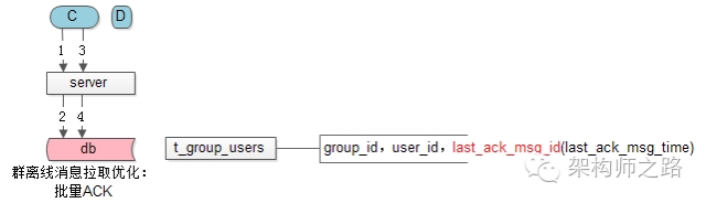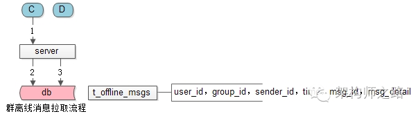 步骤2:server从db中拉取离线消息并返回群用户C;