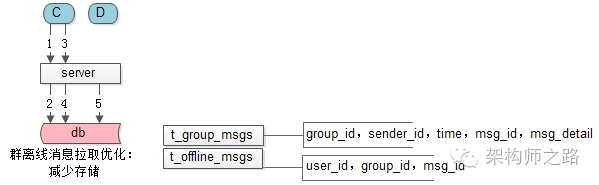 步骤3:在消息msg_detail存储到群消息表后,不再需要操作离线消息表(优化前需要将msg_id插入离线消息表);