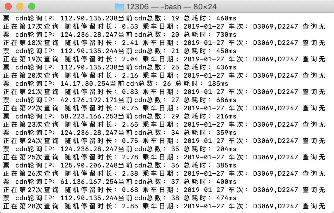 命令行进入项目根目录后,执行sudo python run.py即可开始抢票了。