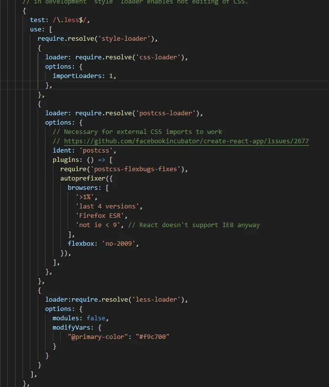 现在我们来对比下如何在新的"webpack": "4.19.1"中添加less-loader,并且通过插件babel-plugin-import实现antd的按需加载。