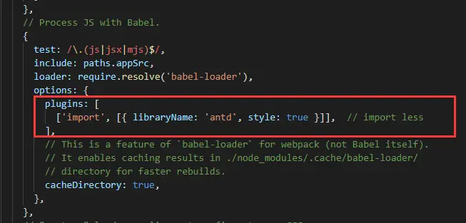 ['import', [{ libraryName: 'antd', style: true }]], // import less