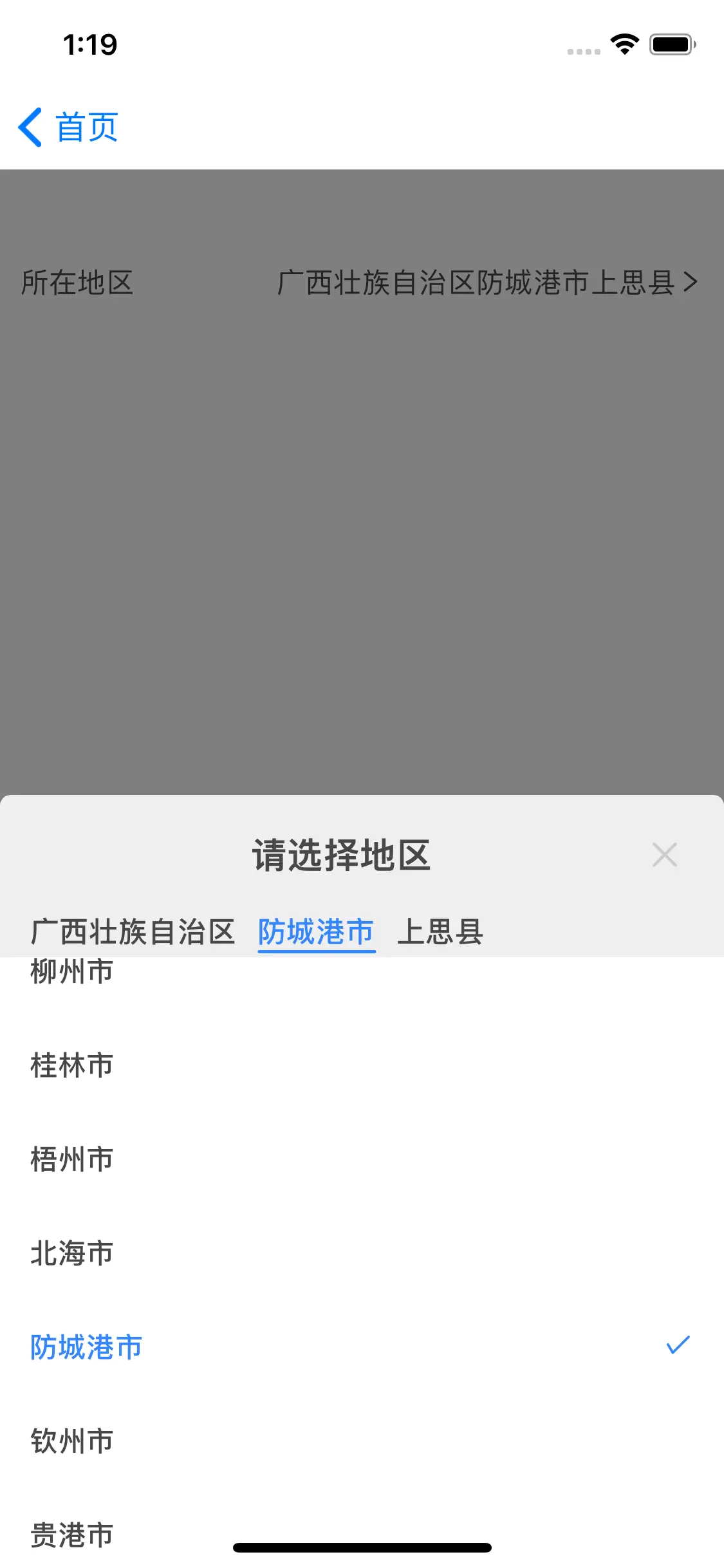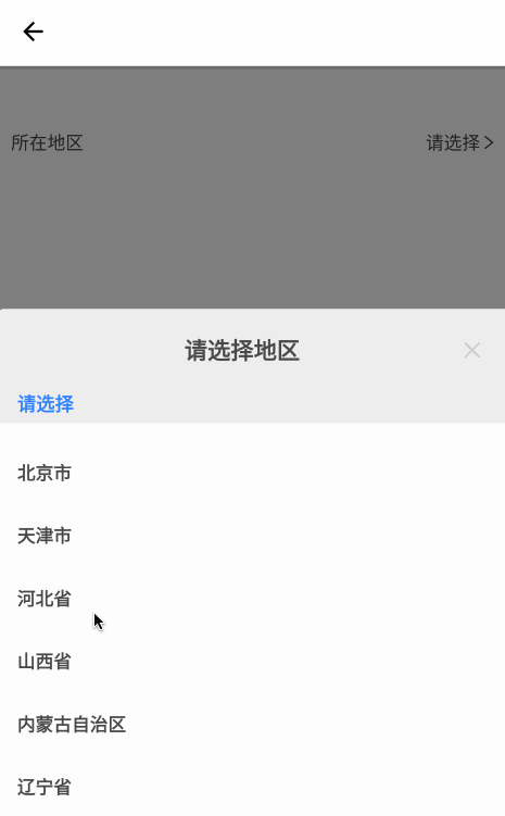 onFinished:类型func, 选取完整地区后回调, 返回值是一个数组[{label: 'xx', value: 'xx'}]onFinished(list) { this.setState({ selected: (list.map(o => o.label)).join('') }) }