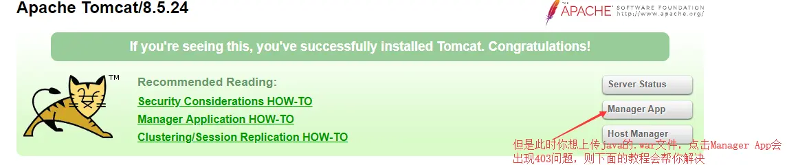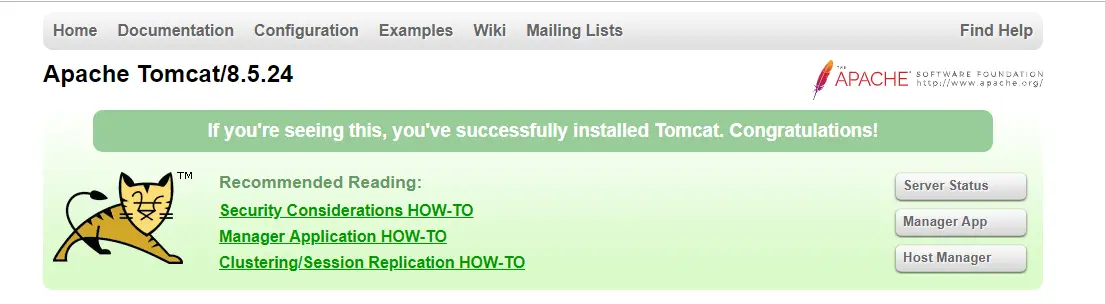 成功页面: - 修改Tomcat的默认端,8080,修改成80,这样你就只需要输入ip就可以访问
