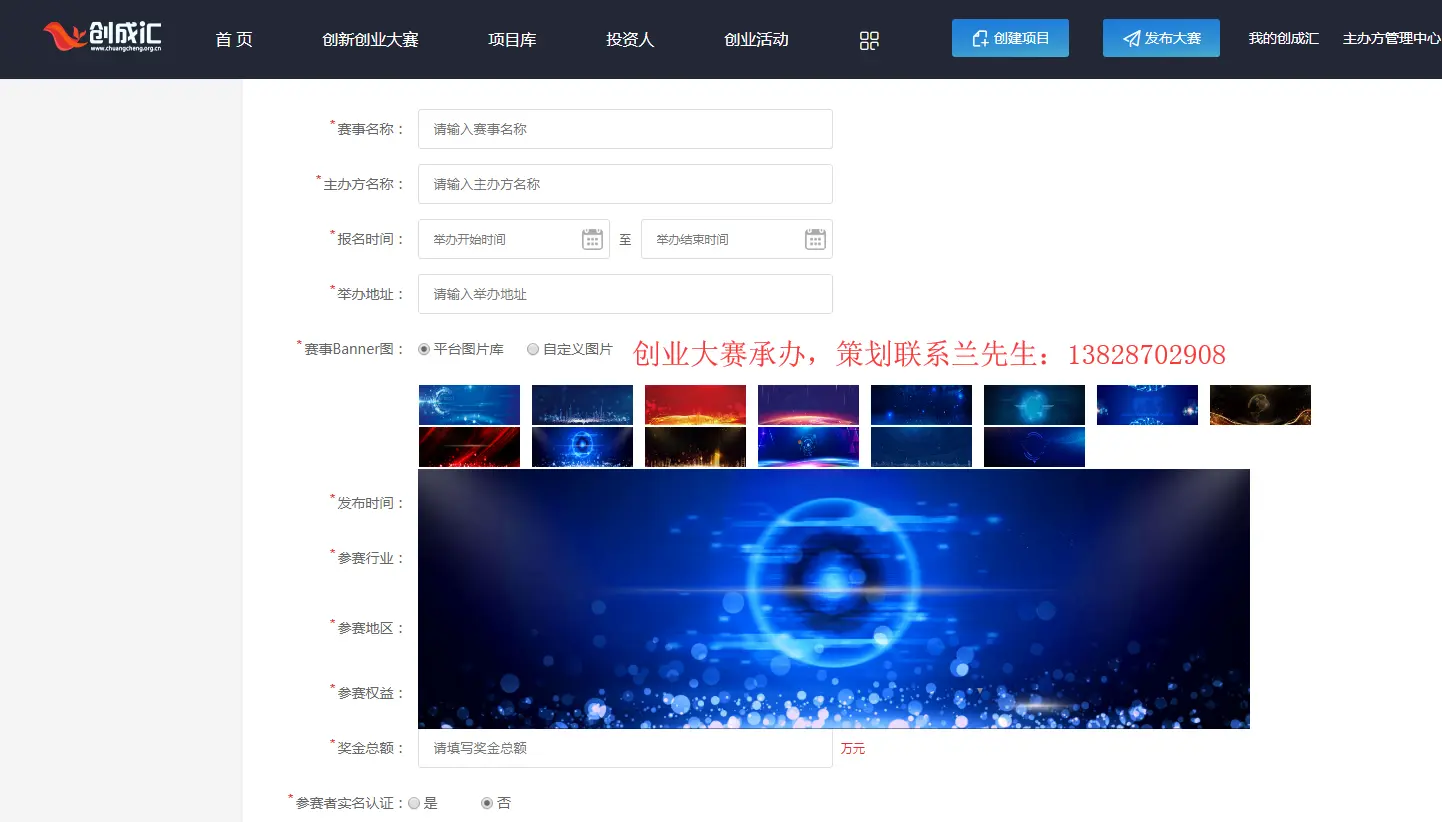 在赛事平台发布赛事需要注意什么? 首先我们要知道的是,赛事平台的主要作用就是发布创新创业大赛,以及一些赛事活动,赛事发布平台一般都不会有很多规则去限制大家发布,但是有几个点是需要大家注意的, 第一个就是关于赛事的基本信息是需要注意的,比如时间地点,需要写明白 第二点页面美观,一个好的大赛是需要做的足够美观细致的,有的赛事发布平台会有模板,你只要填写信息就可以,比如目前比较火的创成汇