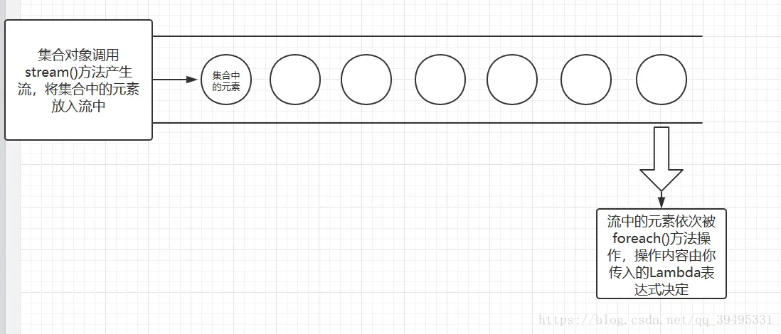 其实 stream() 方法就是将ArrayList中的元素转换为流,而 foreach() 方法就是对流中每一个元素进行处理,处理操作就是你传进去的Lambda(方法引用也可以)。Java大部分的集合框架都带有一个 stream() 方法用来将集合中的元素转为流,那这个流到底是什呢?你可以把他理解为集合的另一种表现方式,但这种表述不准确。流是一次性消费的,就是说你在调用了集合的 stream() 方法后产生一个流,然后对流进行处理操作,操作完之后这个流就消失了。