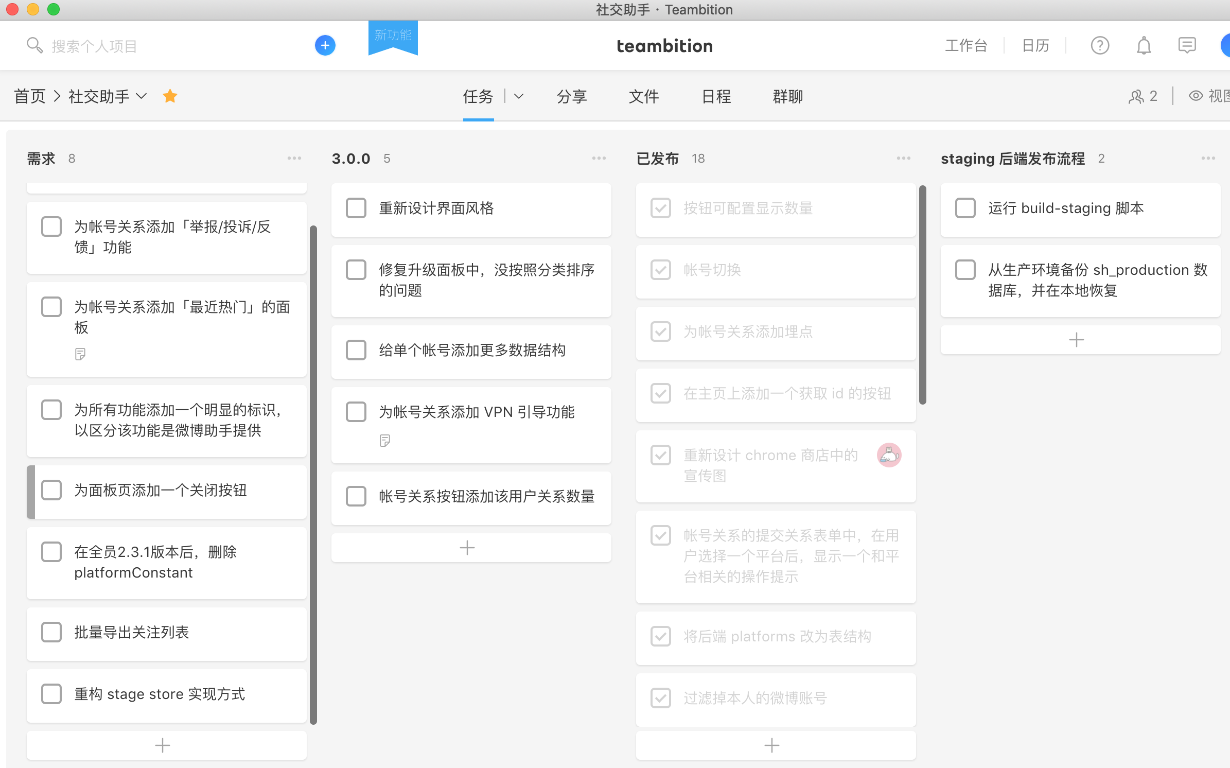 所以这方面使用的 Teambition 来记录开发过程中的各种东西。自己当自己的测试、运维。