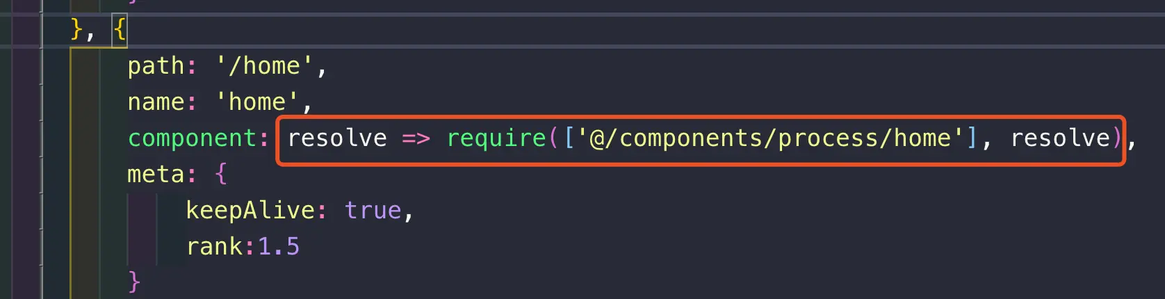 (1)vue-router文件中的router使用懒加载方式。如下图所示