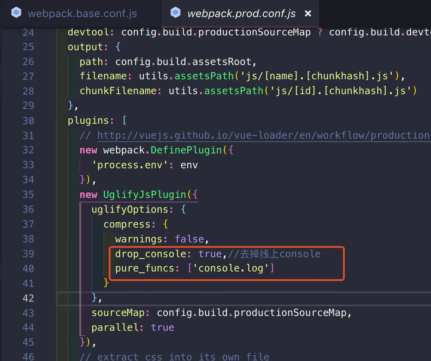 生产环境去掉console代码,减少代码体积,使用uglifyjs压缩代码