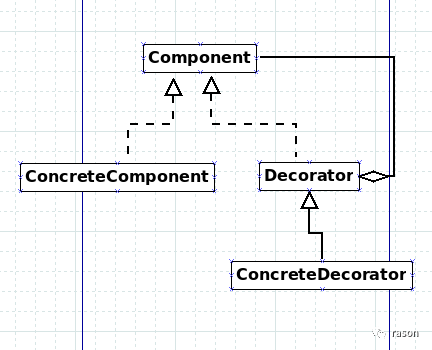 Decorator:装饰器角色,它持有一个Component对象实例的引用,定义一个抽象组件一致的接口。