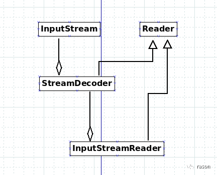 InputStreamReader继承了Reader类,并且持有InputStream的引用,这里是通过StreamDecoder类间接持有,因为从byte到char要经过编码。