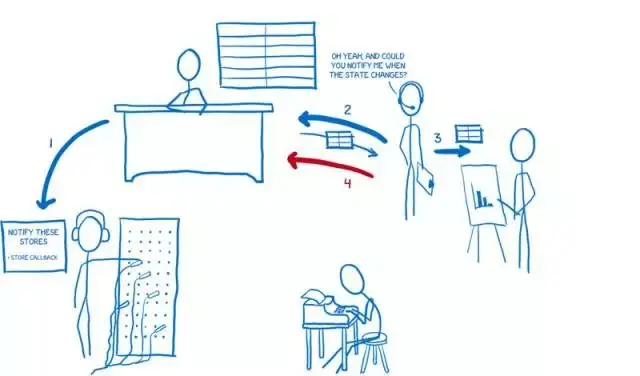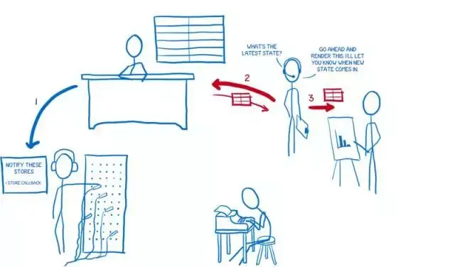 2.然后the controller views 告诉 the stores 如果state有变化,请告诉他。