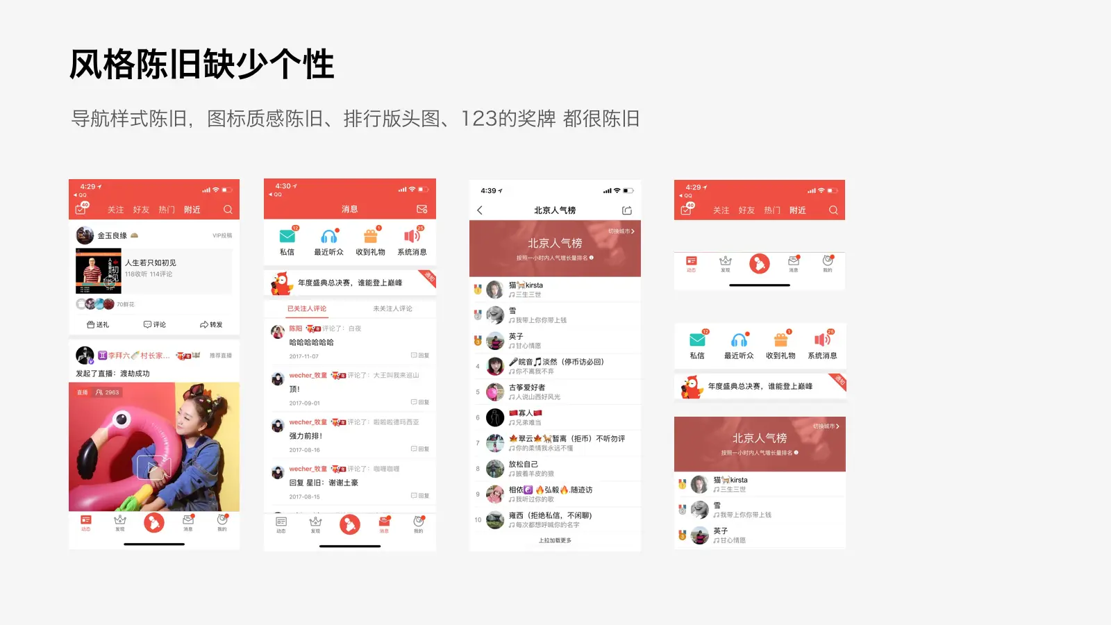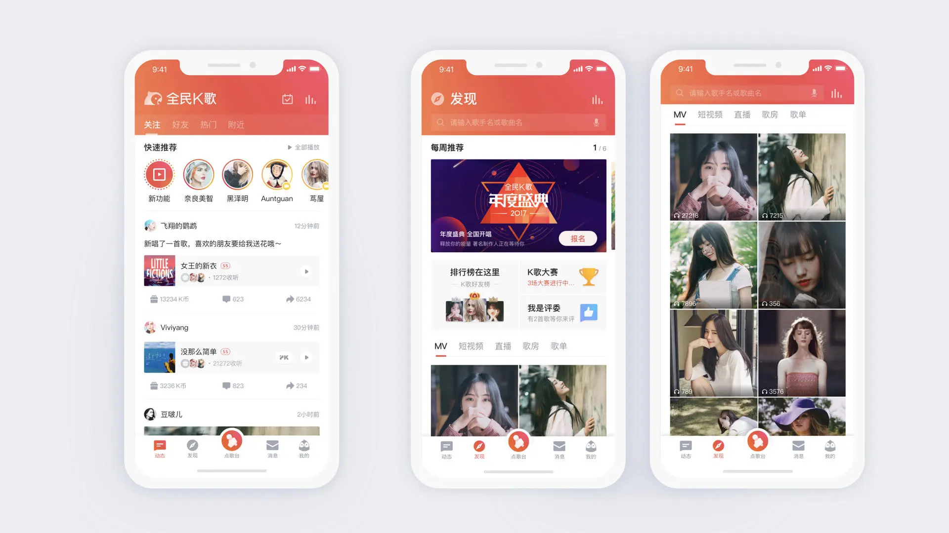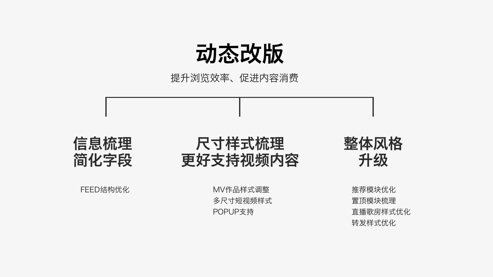 将歌房和直播也梳理成跟mv一致的尺寸。减少Feed流中不同规格的feed带来的界面混乱,提升一致性。