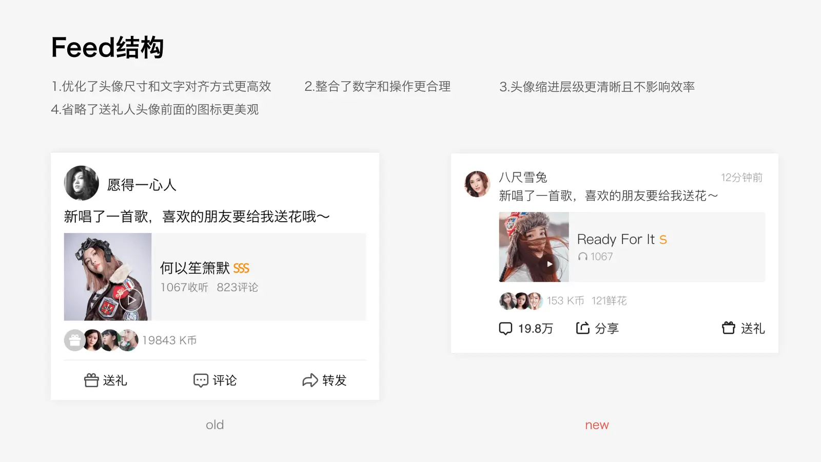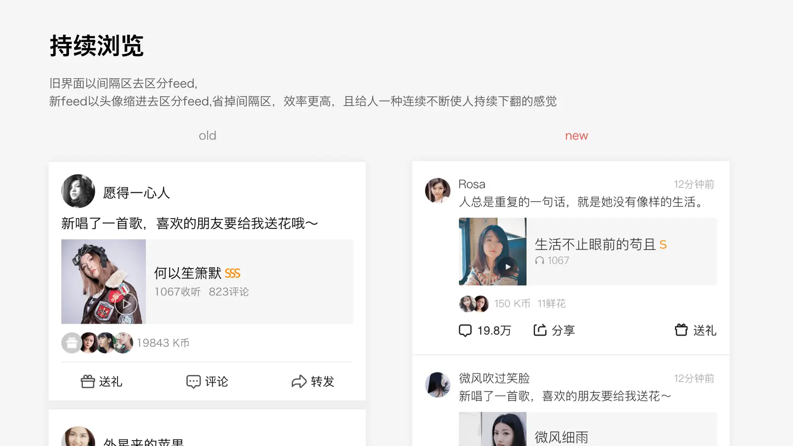 动态的改版着重需要满足的是对视频内容的更好支持。原有样式字段杂乱,需要对展示信息作梳理,简化字段。
