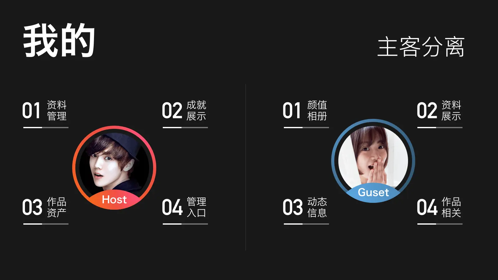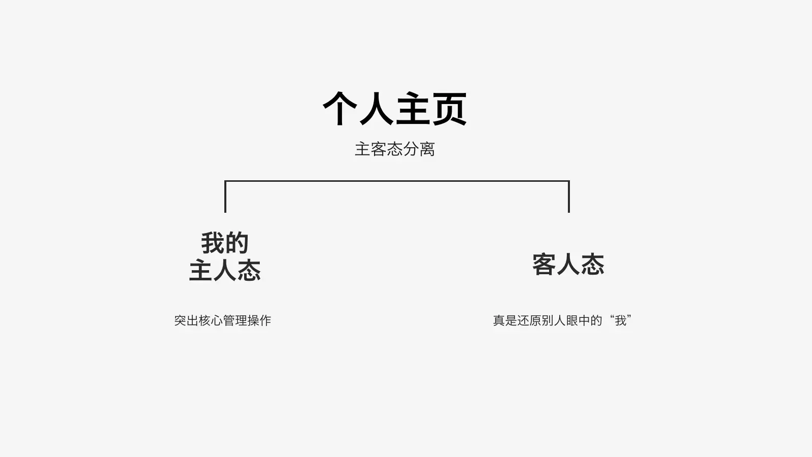 原来的个人主页既要承载主人态的管理诉求,又要承担个人信息展示的诉求,内容非常繁多信息非常复杂。然而主人态和客人态他们的诉求是完全不同的,所以个人主页的改动点就是住客态分离,针对主客们的不同诉求做不同展示。