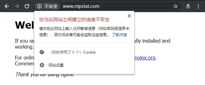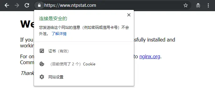 因为我用于签署证书的域名是 www.ntpstat.com,此时可以直接访问了。