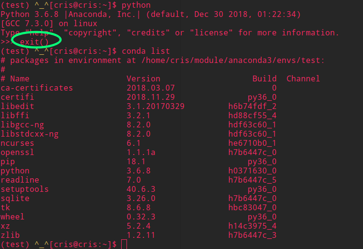 ^_^[cris@cris:~]$ conda create -n test python=3.6