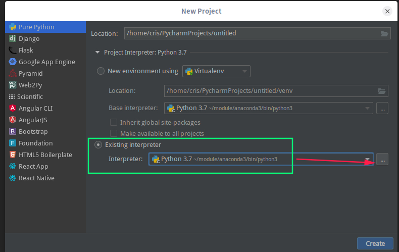 注意:PyCharm 引用 Anaconda 环境时,项目创建完毕,右下角消息栏可能会报出 Inotify Watches Limit 提示,官方的解决方案链接,照着做即可