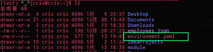 (test) ^_^[cris@cris:~]$ conda env export > environment.yaml