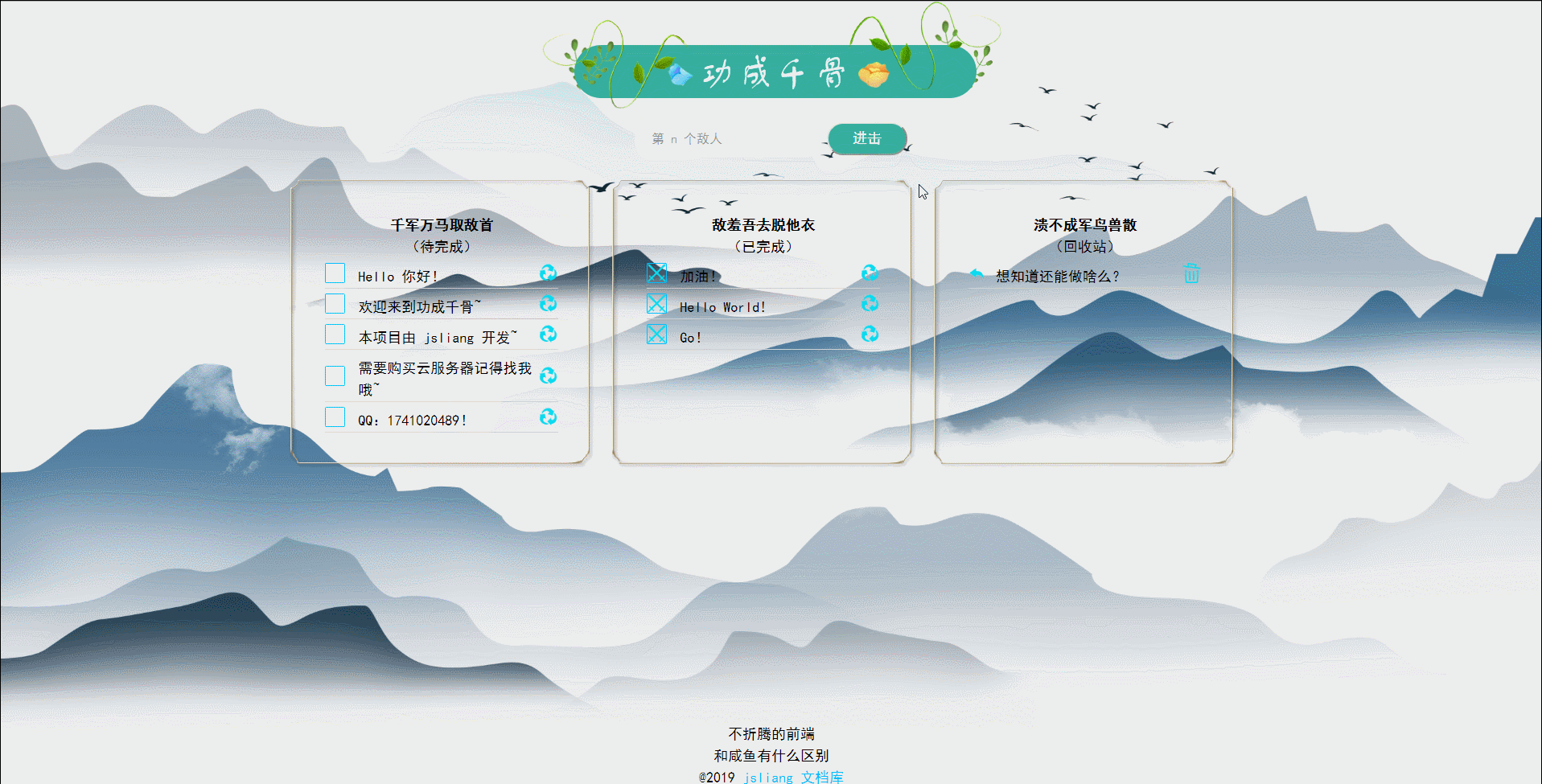 本文的 TodoList 完成正在进行、完成列表、回收站这三个功能模块,并实现下面这些功能: