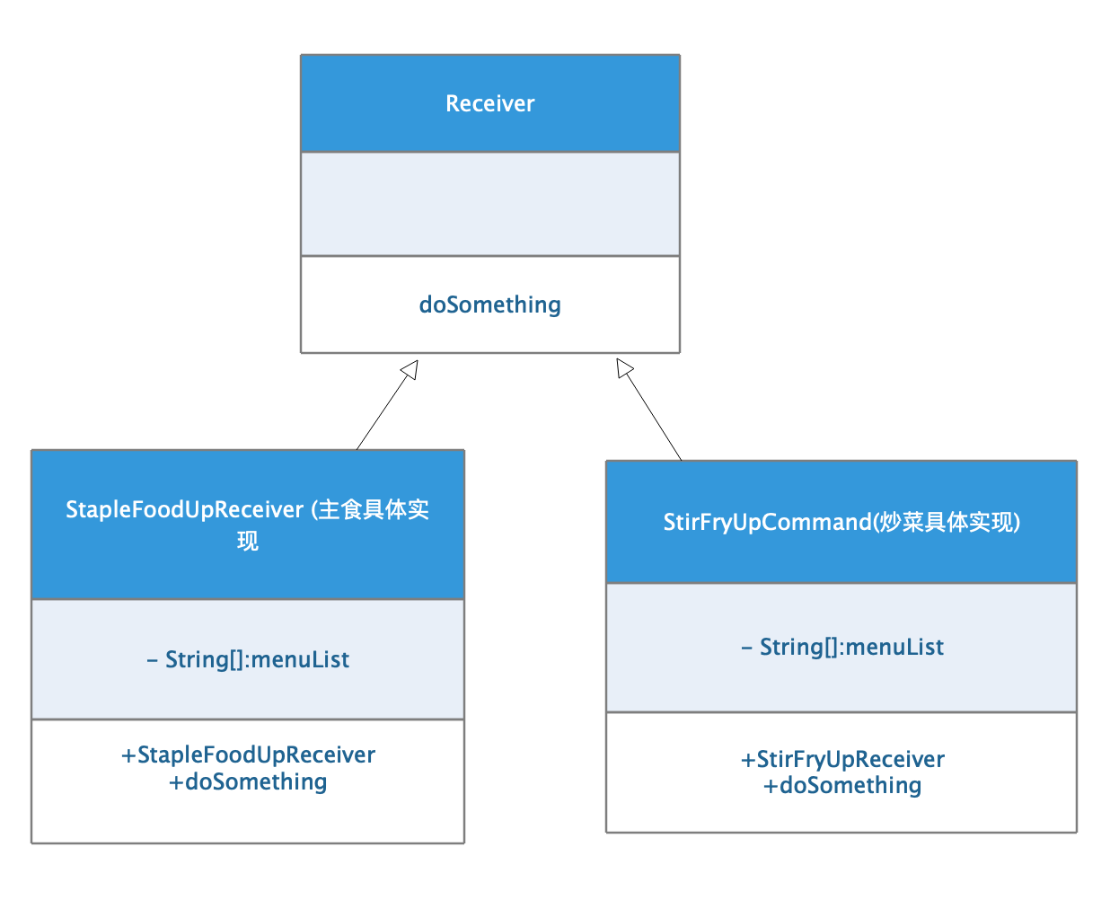 - Receiver接受者角色:该角色就是干活的角色,命令传递到这里是应该被执行的