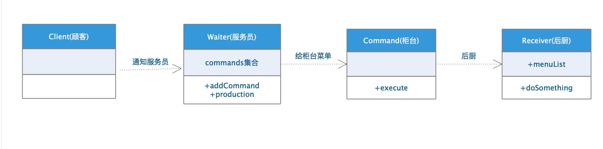 Command命令角色(具体调用具体任务执行者,相当于饭店的柜台)