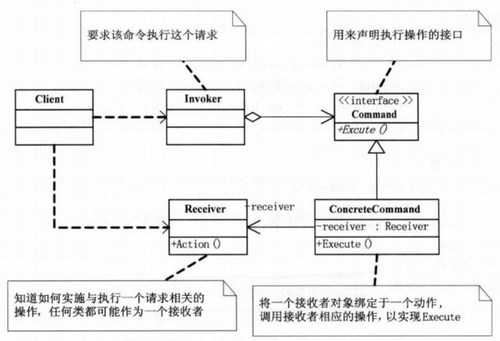 模式共包含: 请求者(INVOKER)、接收者(RECEIVER)、命令(COMMAND)接口、 具体命令(CONCRETE COMMAND)