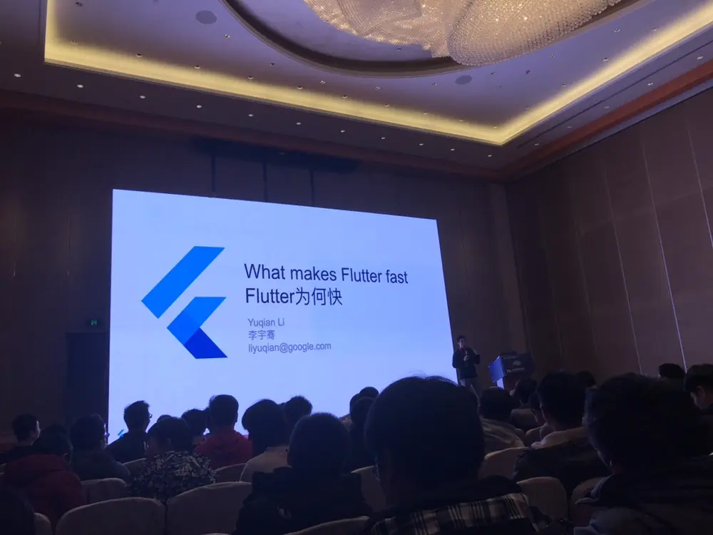 下午场第一场是李宇骞带来的《What makes Flutter fast》,从 Less work 与 Better incentive 两个方面来讲解了到底是什么使得 Flutter 那么快