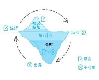 复杂一点的是天赋和选择。天赋本身几乎不能改变,但是你可以通过发掘自己的天赋、选择与之匹配的工作,从而最大化地利用它。所以,我们暂且也认为它是部分可变的。