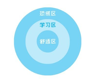 我们的学习,一般有三个区域:一个是舒适区,就是你非常熟练、几乎是下意识就可以完成的事情;中间是学习区,就是有一些挑战,可以通过努力掌握的;最外层是恐慌区,远远超出你的能力,当前很难掌握。