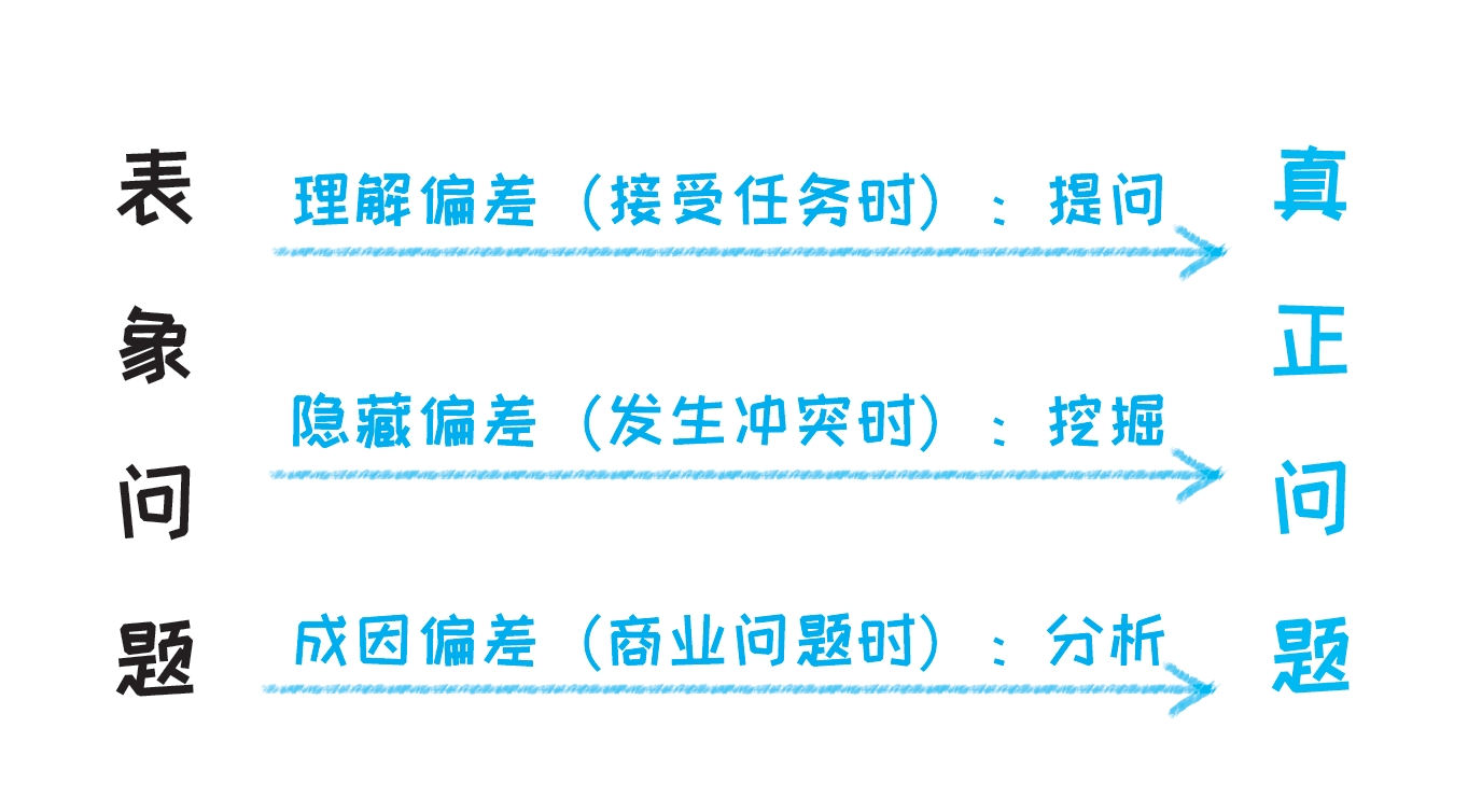 第一,理解偏差(常常出现在别人要你解决问题的时候)——所以要提问。