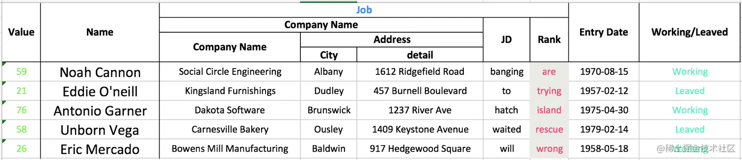我们用Header元素代表要导出Company的一个复杂属性,同时设置字体颜色是红色