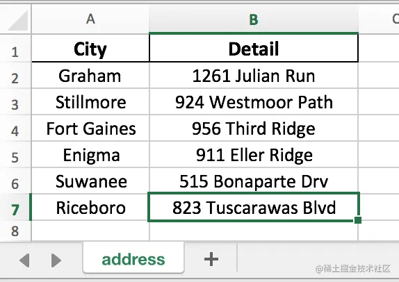 Octopus.writeOneSheet(os, config, "address", addresses);