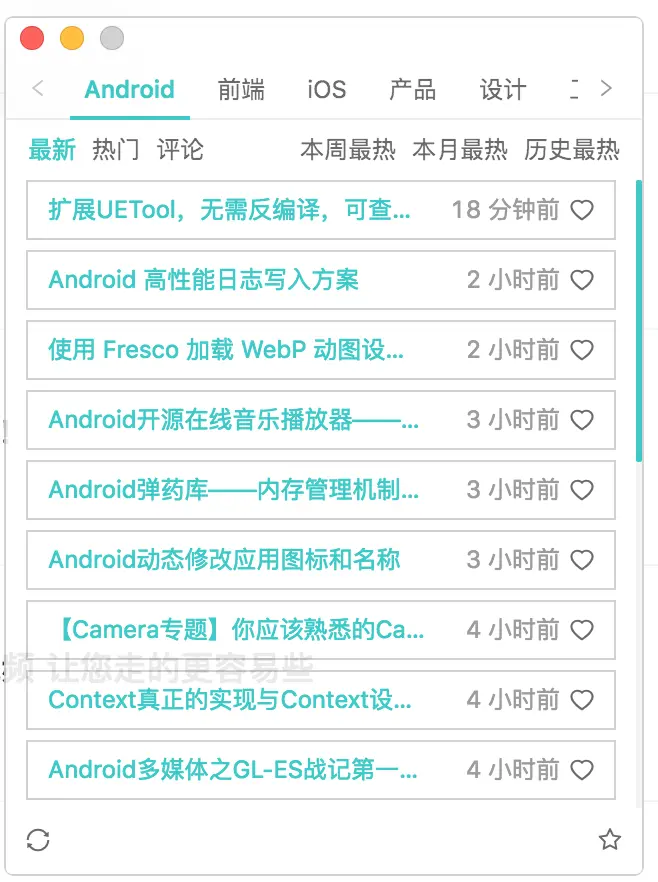 Electron版掘金轻客户端 小码Coder 2019-01-14 3,317 阅读1分钟 使用掘金已经成为日常习惯了,所以做了个轻客户端可以及时关注掘金上最新文章。内容页直接跳转掘金网站,增加了本地收藏、窗口置顶功能。 本项目仅供学习使用,项目结构简单,可以快速入门Electron + React单页开发模式 技术栈 React + Electron + Mobx + Antd + Webpack github地址 首页 收藏夹 Mac客户端下载地址 mac客户端下载